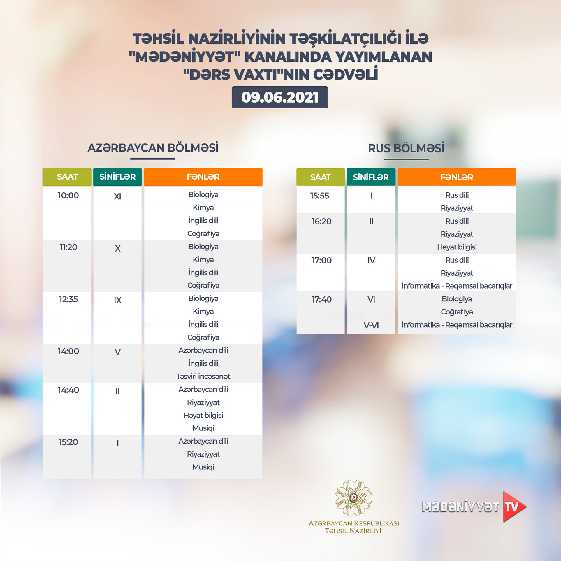 "Dərs vaxtı"nın bugünkü CƏDVƏLİ