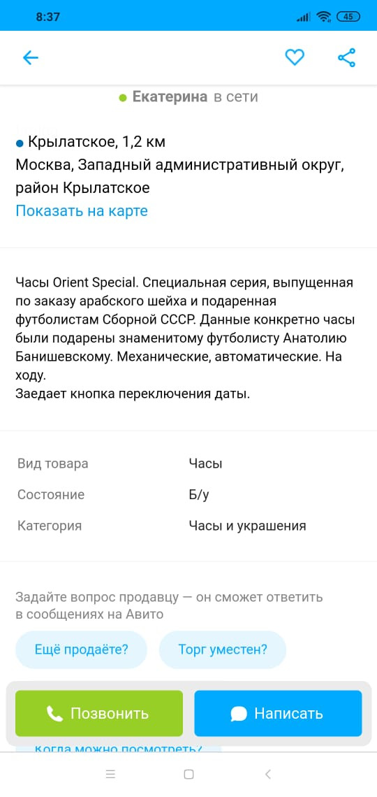 Lent.az-ın məlumatına görə, Banişevskiyə bağışlanmış “Orient Special” saatı avito.ru saytında Yekatrina adlı şəxs tərəfindən satışa qoyulub. Yekatrinanın saytda yerləşdirdiyi məlumata görə, bu saat ərəb şeyxləri tərəfindən SSRİ yığmasının üzvlərinə bağışlanılıb və onun sifarişi ilə hazırlanıb. Saat mexanikidir və qiyməti 57 500 rubl (1250 azn) təşkil edir.