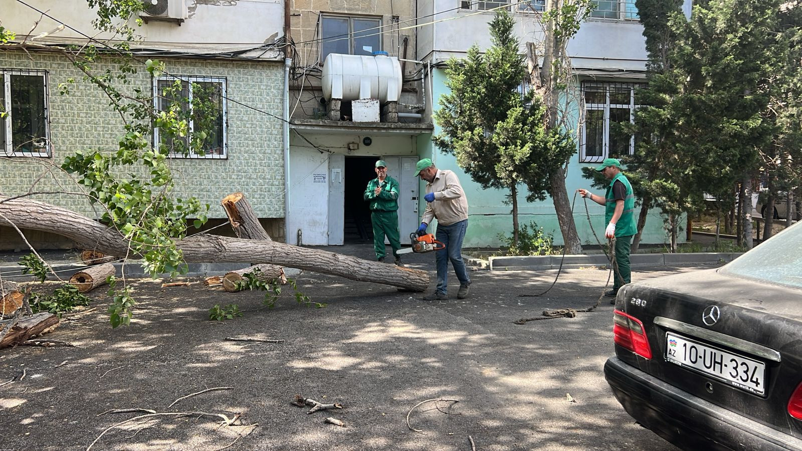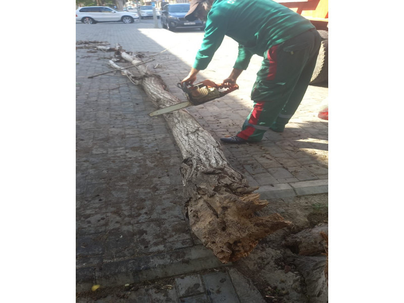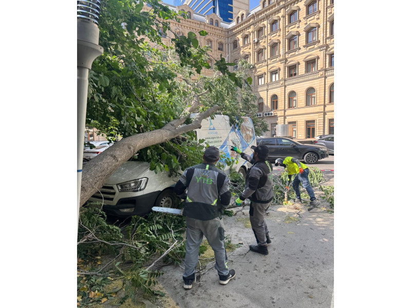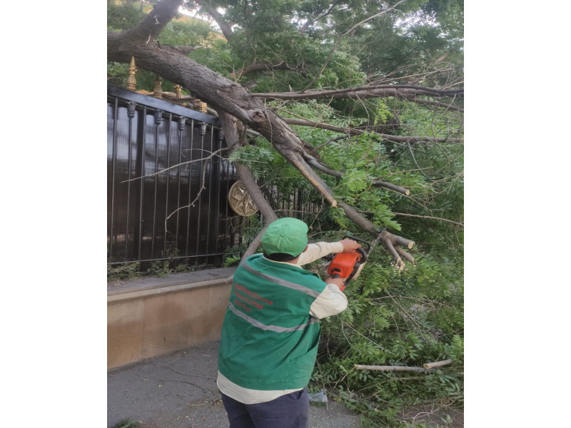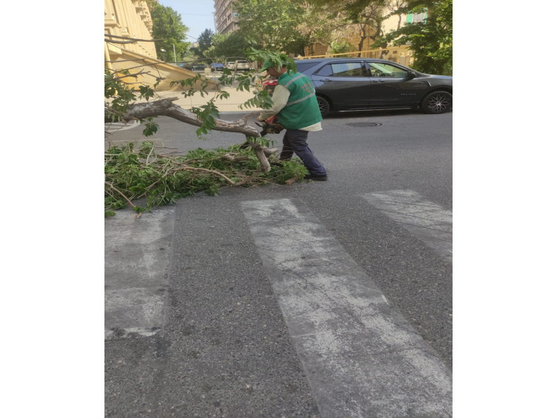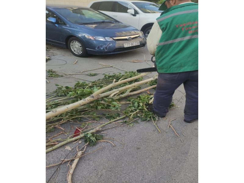 Yaşıllaşma Təsərrüfat Birliyinin əməkdaşları tərəfindən zədələnən budaqlar kəsilib, sınan ağaclar götürülərək ərazi təmizlənib.