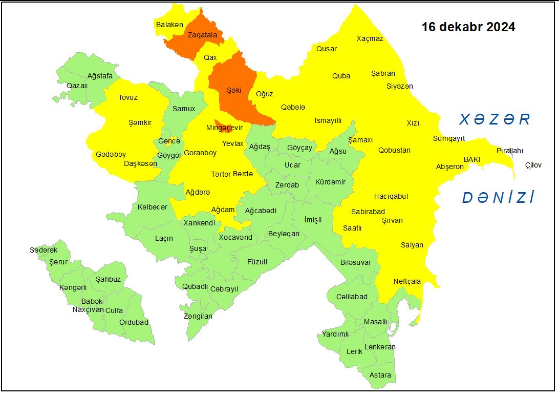 Milli Hidrometeorologiya Xidməti dekabrın 16-da Bakıda və Abşeron yarımadasında, eyni zamanda bəzi bölgələrdə gözlənilən küləkli hava şəraiti ilə bağlı sarı və narıncı xəbərdarlıq verib.