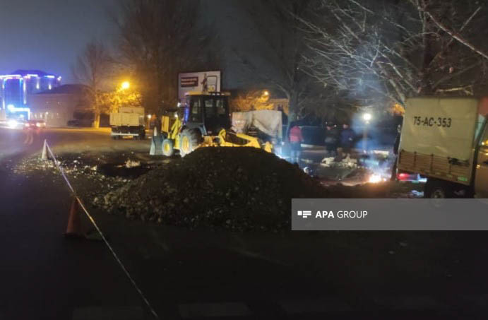 Naxçıvan şəhərinin Cəlil Məmmədquluzadə küçəsindən keçen diametri 355 millimetr olan əsas magistral xəttində qəza baş verib.