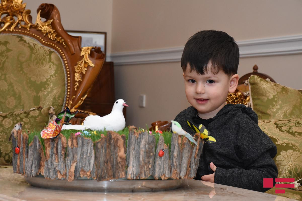 Bu zaman içəri əli bayraqlı iki yaşlı nəvə İsa daxil olur.