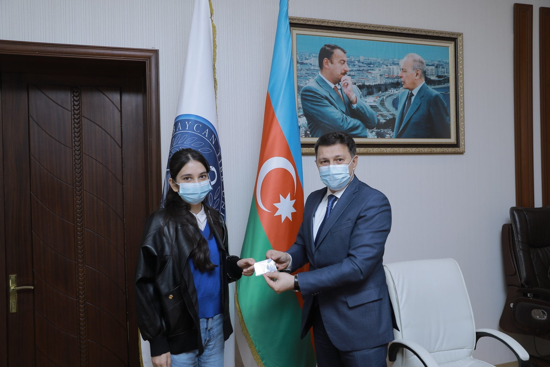 Aybəniz Həşimovaya təhsildə uğurlar arzulayan ATU-nun rektoru ona tələbə biletini və universitet adından hədiyyə olaraq noutbuk təqdim edib.