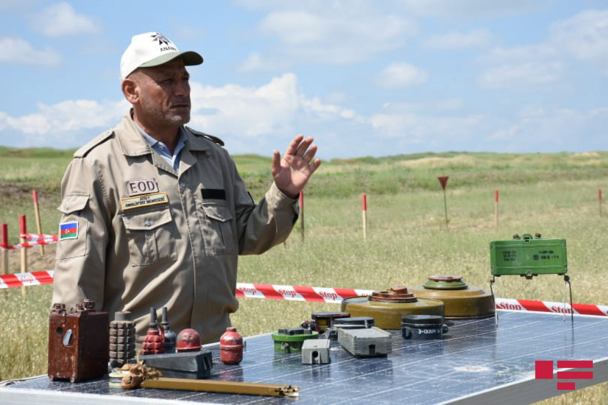“Bu səbəbdən əsasən təmas xəttindən keçən yoldakı minaları təmizləyirik. Yalnız bundan sonra asfalt xətti genişləndirilərək orada yenidən təmir işləri aparılır. Bunlardan biri əllə təmizləmədir ki, bu zaman əməkdaşlar detektor və digər cihazlardan istifadə edirlər. İkinci üsul xüsusi təlim görmüş itlərin vasitəsilə ərazidəki partlamamış hərbi sursatlar axtarılır. Üçüncü üsul isə mexanika vasitəsilə minaların təmizlənməsidir. Hazırda təmizləmə əməliyyatları davam edir. Ərazidə aşkar olunan partlamamış hərbi sursatlar aşkar edilərək gün sonunda partladılır”.