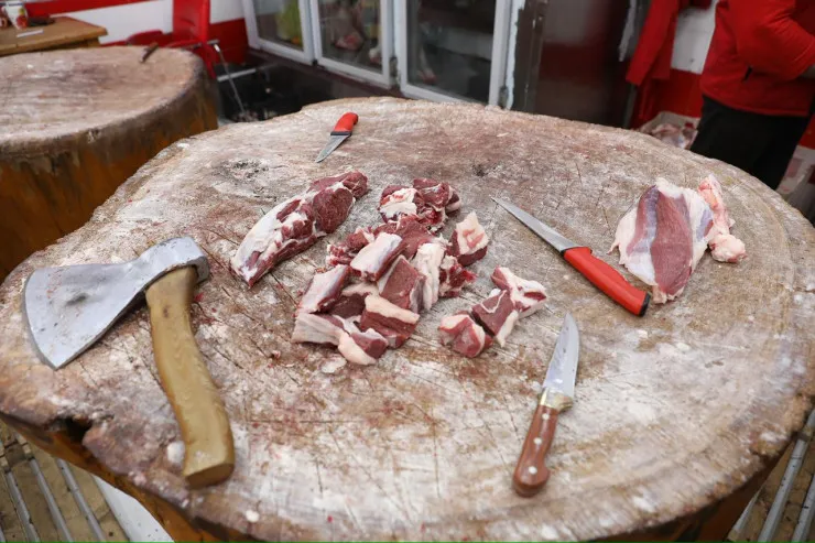 Bundan başqa, aparılan reyd zamanı bazar ətrafında fəaliyyət göstərən “Kəngərli-203 Kəndli Fermer Təsərrüfatı” MMC-yə məxsus ət satışı mağazasında qanunsuz olaraq heyvan kəsimi üçün dəmir konstruksiyaların quraşdırıldığı, iri və xırdabuynuzlu heyvanların satışı və kəsiminin baytarlıq ekspertizası aparılmadan həyata keçirildiyi müəyyən edilib. Nöqsanlarla bağlı qanunsuz quraşdırılmış dəmir konstruksiyalar yerli icra hakimiyyətinin nümayəndələri tərəfindən sökülüb, kəsimin həyata keçirildiyi obyektin fəaliyyəti məhdudlaşdırılıb və sahibkar barəsində inzibati protokol tərtib olunub.