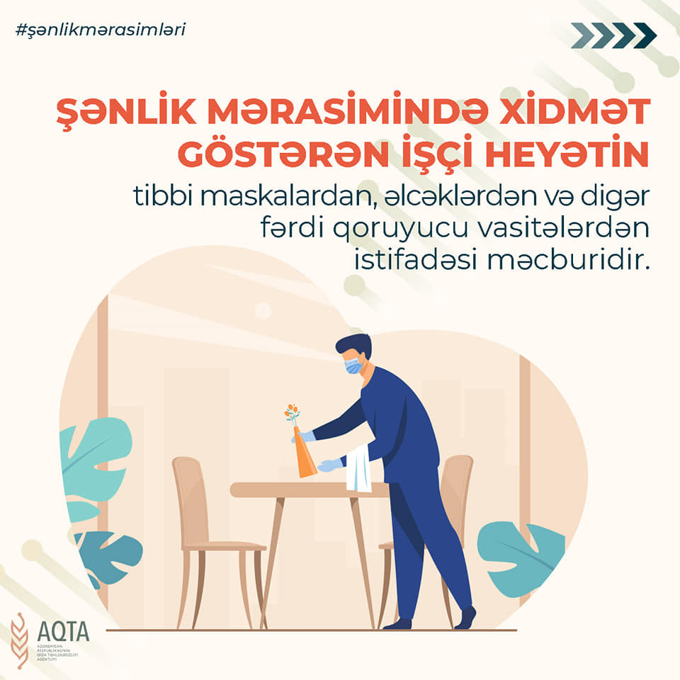İnsanların sıx toplaşmasının xəstəliyin yayılma intensivliyinə birbaşa təsirini nəzərə alaraq, şənlik mərasimlərinin keçirildiyi ictimai iaşə müəssisələrində bir sıra qaydalara əməl olunmalıdır.