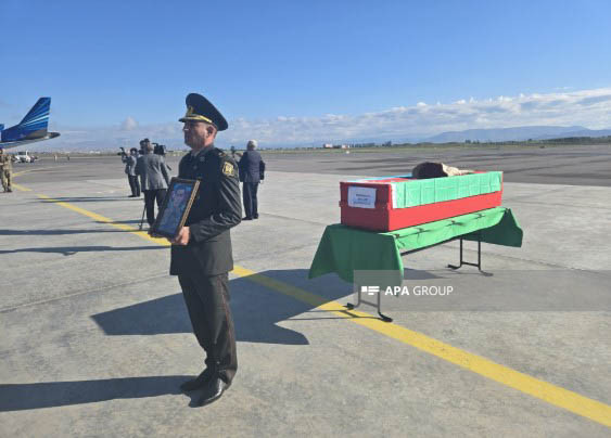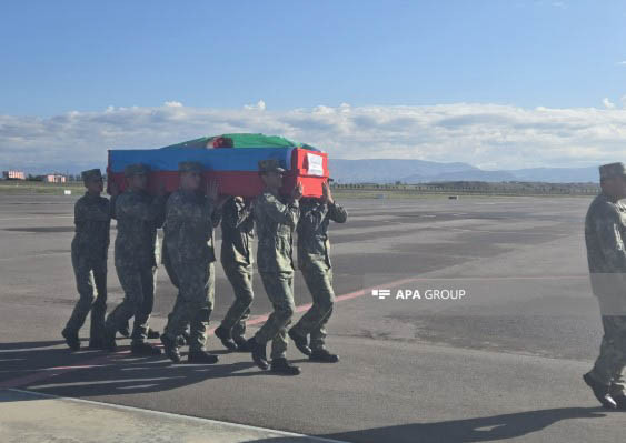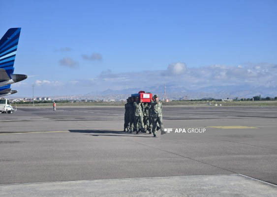 Lent.az xəbər verir ki, Naxçıvan Beynəlxalq Hava Limanında üçrəngli bayrağa bükülmüş şəhidin tabutunu ailə üzvləri, yaxınları, dövlət və hökumət nümayəndələri qarşılayıb.