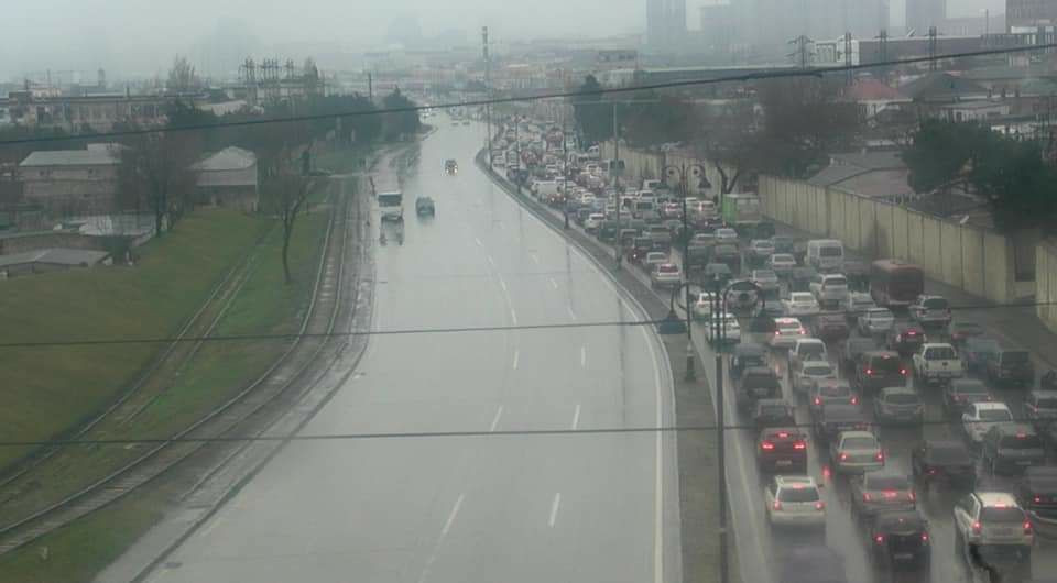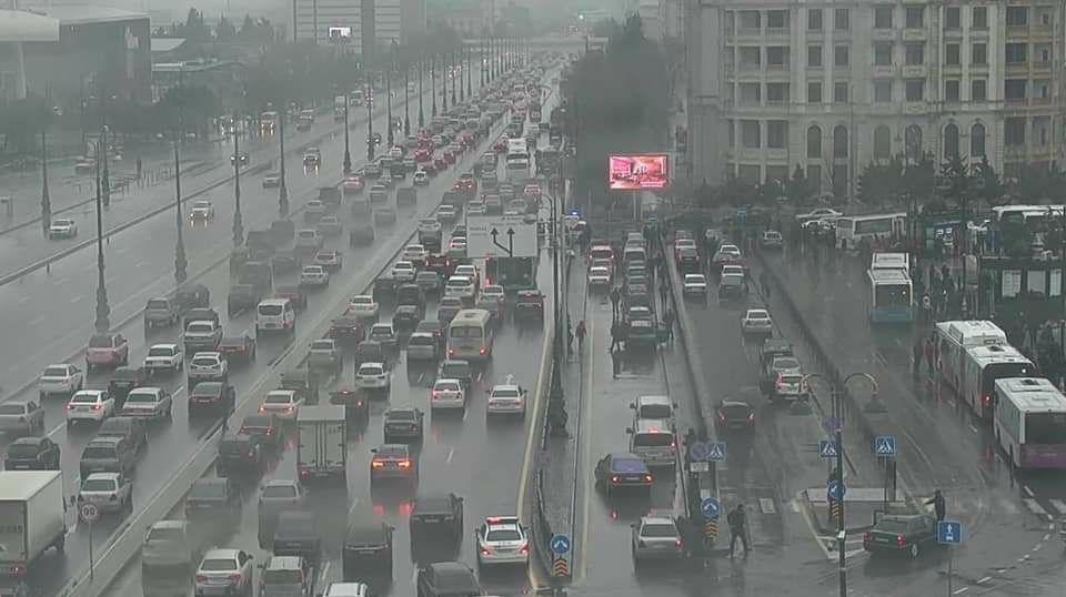 Paytaxtın əksər küçə və prospektlərində nəqliyyat vasitələrinin hərəkətində sıxlıqlar müşahidə olunmaqdadır.