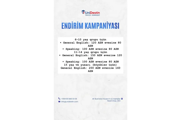 - General English: 120 AZN əvəzinə 80 AZN