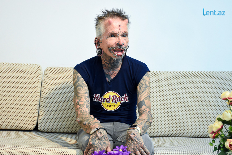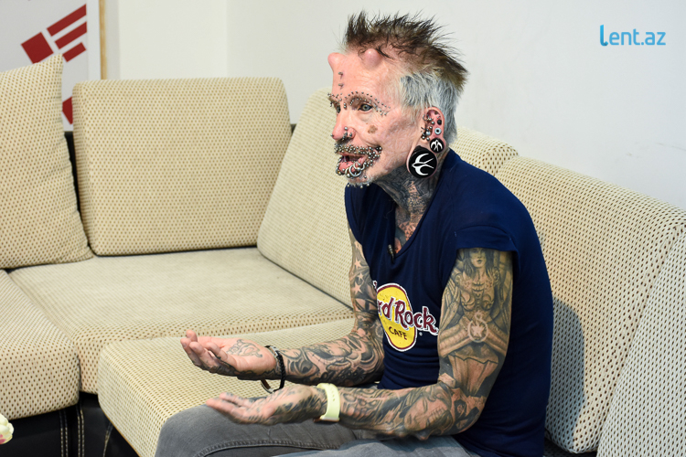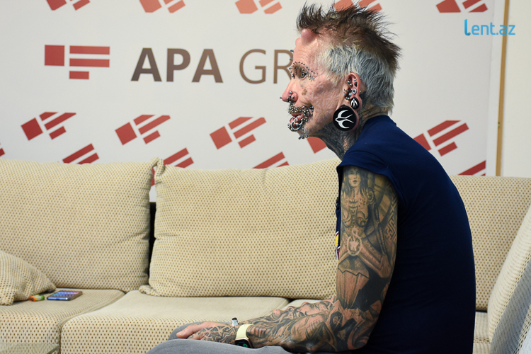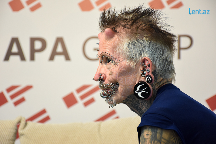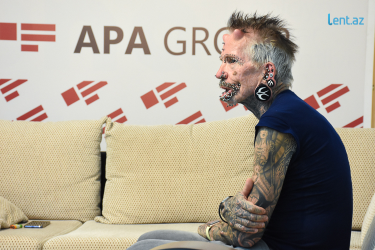 Dünyanın ən çox prisinqli adamı Rolf Buchholz APA GROUP-da  qonaq olub. O, Lent.az-ın əməkdaşına deyib ki, Bakıya turist kimi gəlib və bu şəhəri çox bəyənir. Rolf Buchholz Bakının maraqlı şəhər olduğunu bildirib. Bundan əlavə, Rolf Buchholz qeyd edib ki, Bakıda onunla oğlanlardan çox qızlar maraqlanır. O, başındakı buynuzdan və bədənindəki slikonlardan da danışdı. Rolf Buchholz deyir ki, qolundakı romb bədənindəki mənzərəni tamamlayır. Qonağın sözlərinə görə, buynuzlarına əməliyyat vasitəsilə sahib olub.