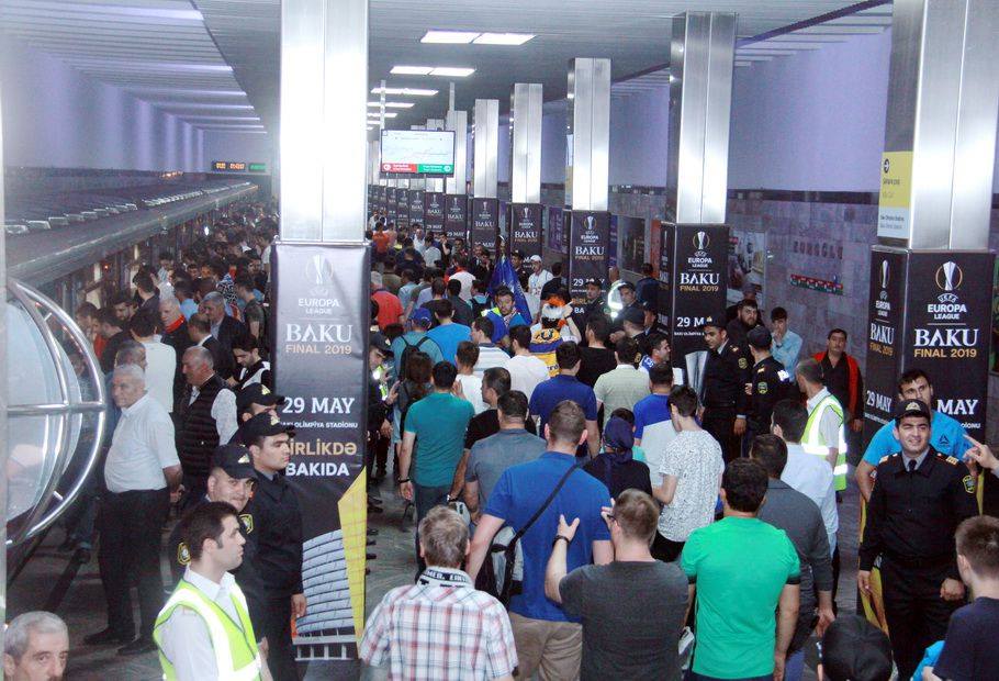 Futbol üzrə UEFA Avropa liqasının final qarşılaşmasının Bakı Olimpiya Stadionunda keçirilməsi ilə əlaqədar Bakı metropoliteni oyunun keçirildiyi 29 may və 30 maya keçən gecə gücləndirilmiş iş rejimində çalışıb.