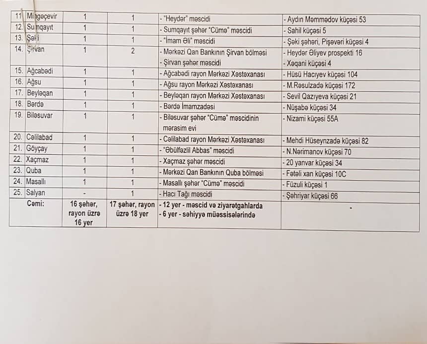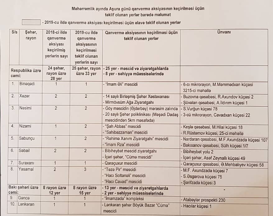 Aşura günü qanvermə aksiyaları bu məkanlarda keçiriləcək - SİYAHI