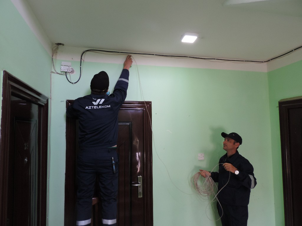 Şəhərin M.P.Vaqif küçəsində yerləşən 4 mərtəbəli, 36 mənzilli binaya 1300 metr məsafədə yerləşən elektron ATS-dən müxtəlif tipli kabellər çəkilməklə telefon və internet xidmətləri verilib.