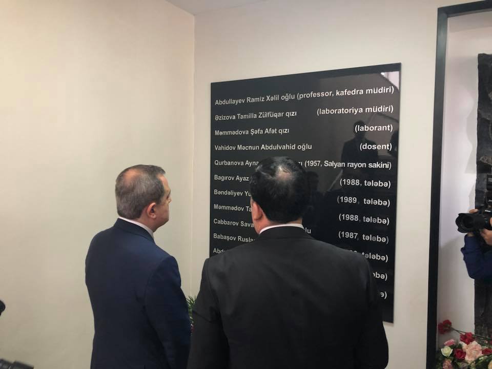 Təhsil naziri Ceyhun Bayramov 10 il əvvəl Azərbaycan Dövlət Neft və Sənaye Universitetində (keçmiş ADNA) baş vermiş terror hadisəsi nəticəsində həlak olmuş tələbə və müəllimlərin xatirəsini anıb.