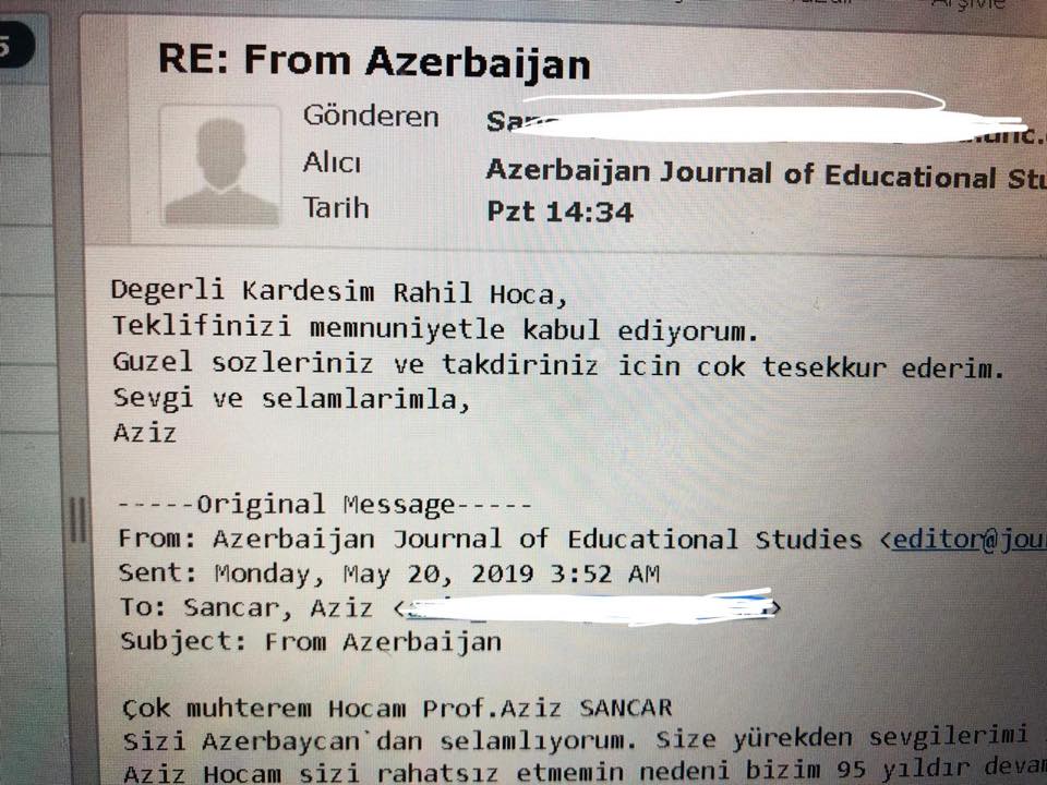 O bildirib ki, Nobel mükafatçısı Əziz Sancar Azərbaycanın 95 yaşlı “Azərbaycan Məktəbi" təhsil jurnalının redaksiya heyətinə üzv qəbul olunmasına razılıq verib.
