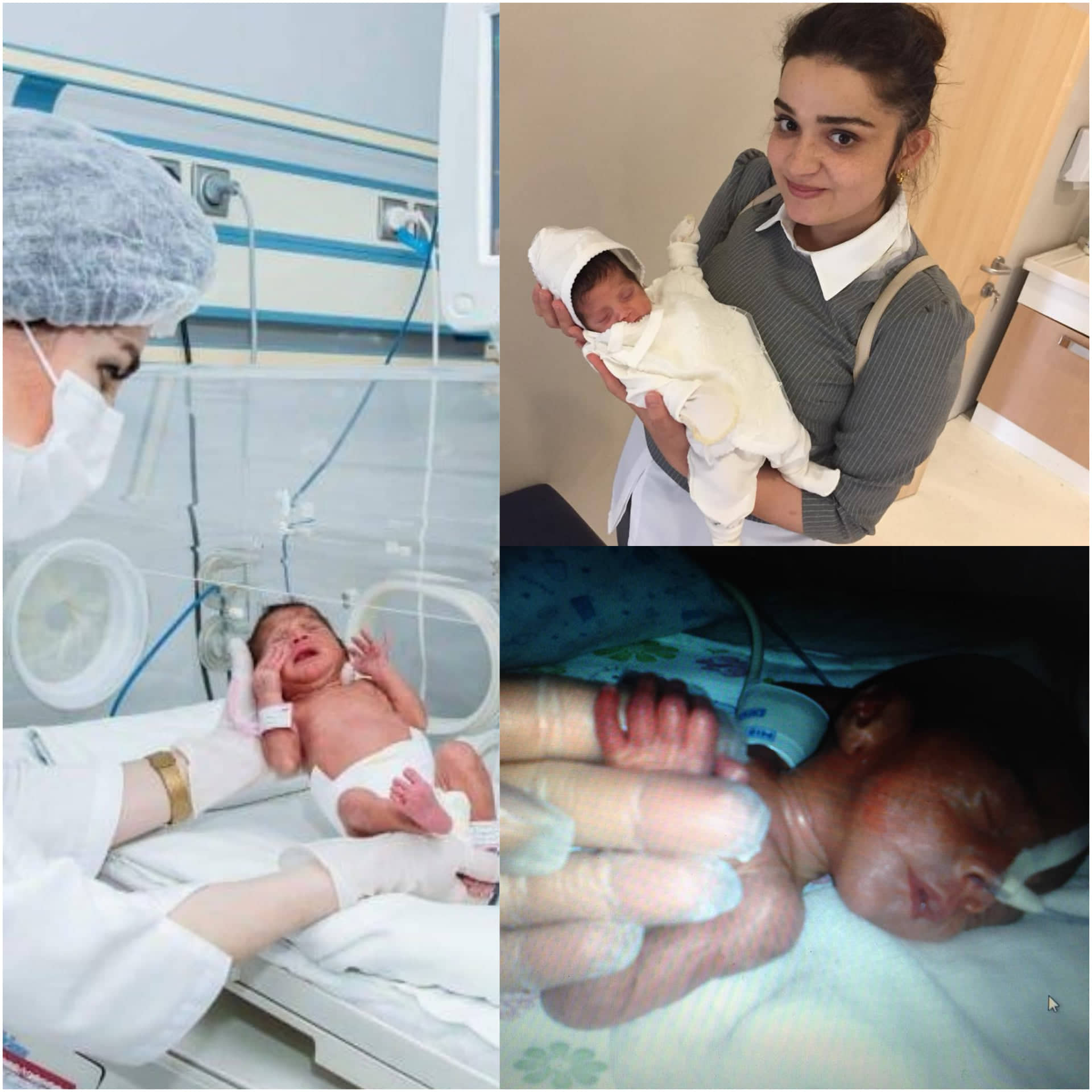 Neonatoloq-pediatr Təzibə Mirzəliyeva isə deyib ki, bir neçə risk faktoru olan anadan dünyaya gələn körpə doğularkən ekstremal-azçəkili olduğundan reanimasiya şəraitində müalicəsi davam etdirilib, “Topuq testi”, ROP müayinəsi, eşitmənin skrininq müayinəsi aparılıb, Mərkəzin neonatoloji komandasının gərgin əməyi nəticəsində çəkisi 1.800 qrama çatdırılıb və ana-körpə sağlam vəziyyətdə evə yola salınıb. Bütün zəruri təkrar müayinələrdən keçib, hazırda nevroloji statusu normaldır.
