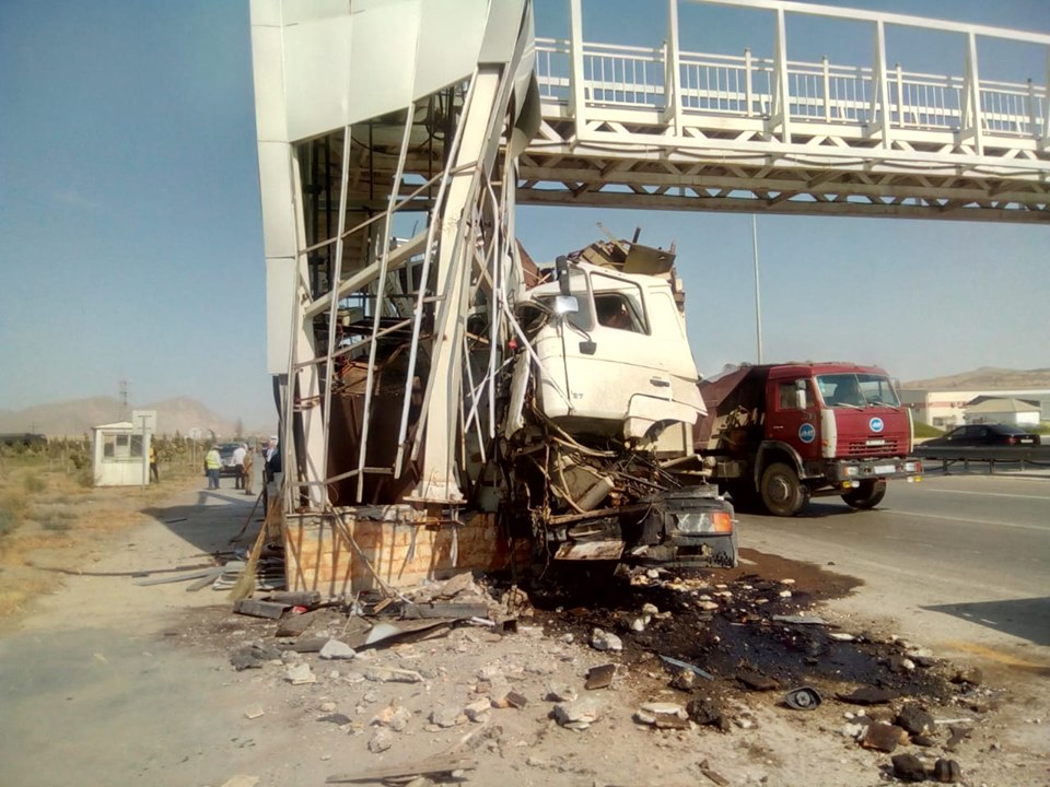 Bu barədə Lent.az-a Azərbaycan Avtomobil Yolları Dövlət Agentliyinin (AAYDA) mətbuat xidmətindən məlumat verilib. Bildirilib ki “Shagman” markalı 99 DF 915 dövlət nömrə nişanlı yük maşını Bakı şəhəri istiqamətində hərəkətdə olarkən yerüstü piyada keçidinə çırpılıb. Qəza zamanı yerüstü piyada keçidi və içərisində olan lift sıradan çıxıb.
