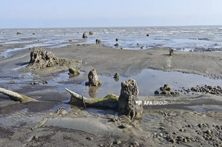 Lənkəran rayonunun Kənarmeşə kəndi ərazisində Xəzər dənizinin geri çəkilməsi nəticəsində illərdir suyun altında qalmış qədim meşə qalıqları üzə çıxıb.