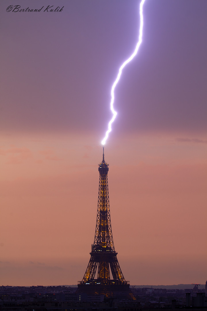 Ötən gecə Parisdəki məşhur Eyfel qülləsini ildırım vurub.