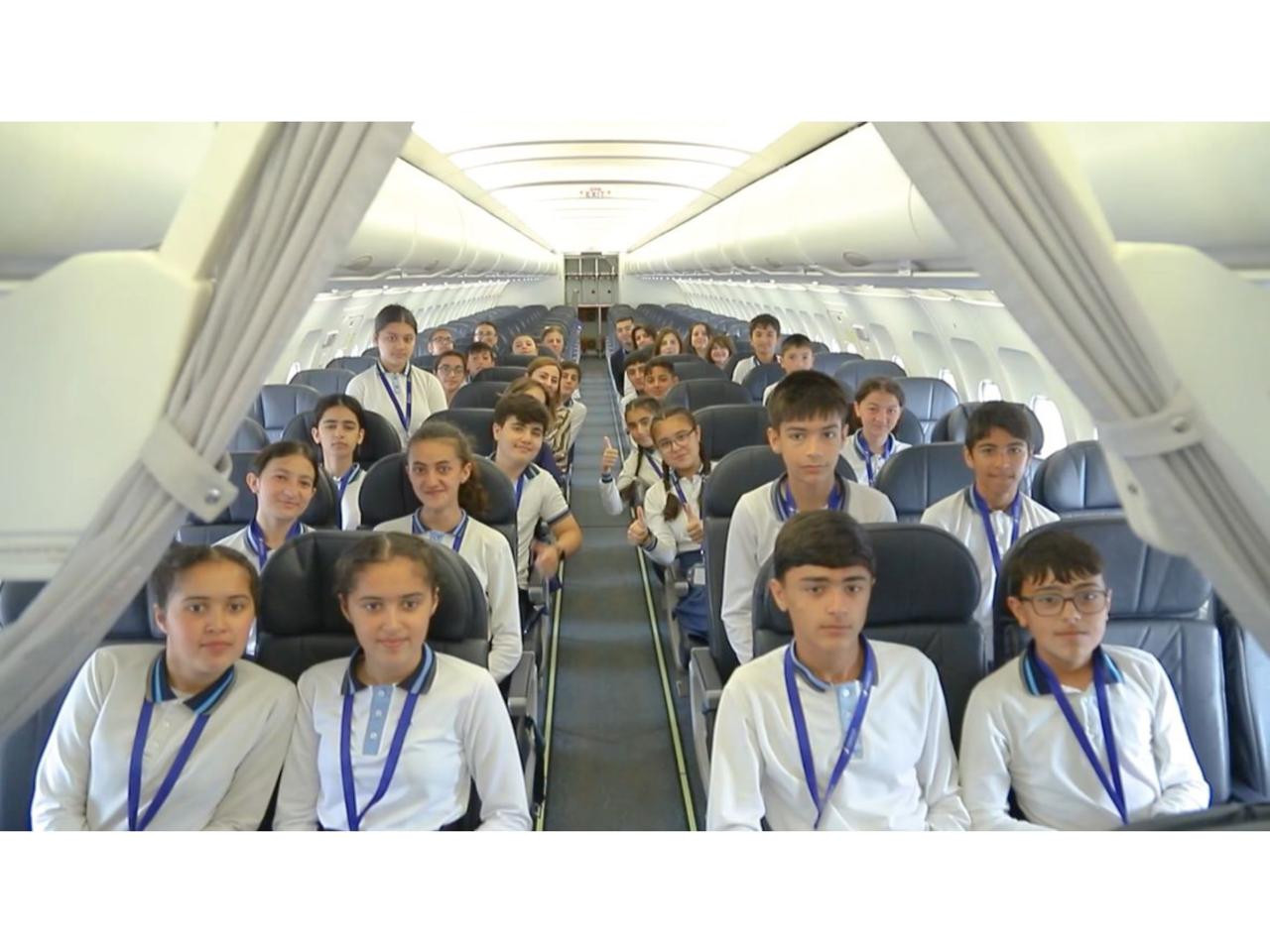 Ekskursiya dünyanın ən müasir sərnişin təyyarələrindən biri ilə tanışlıqla başa çatıb.