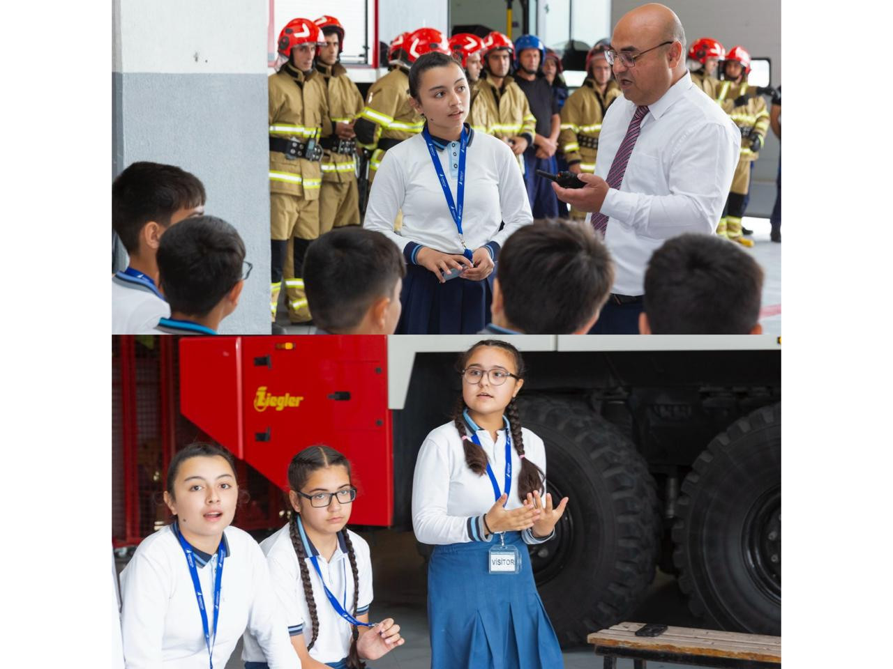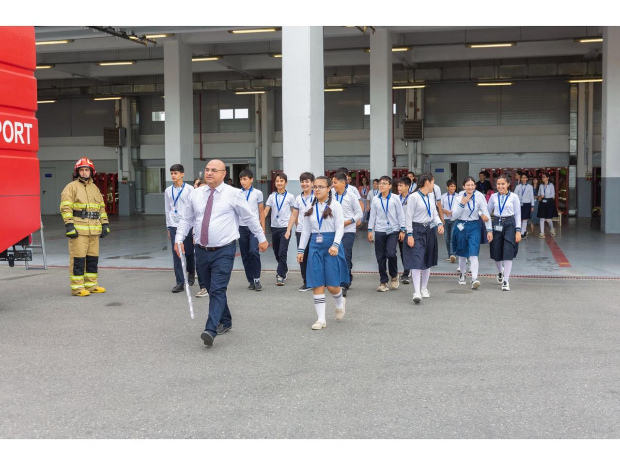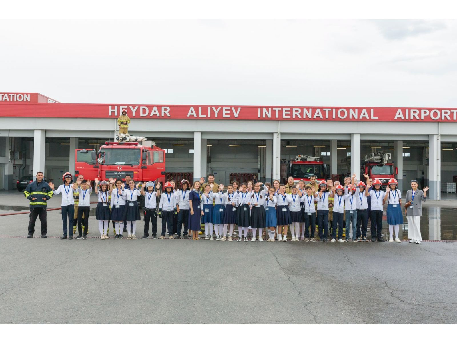 Ekskursiyanın növbəti məkanı aeroportun yanğınsöndürmə xidməti olub. Yanğınsöndürmə xidmətinin nümayəndələri uşaqlara yanğınsöndürmə maşınının quruluşu barədə danışıb, yanğınsöndürənlərin döyüş geyimi, yanğın xilasedici qurğuları nümayiş etdirib, su və köpüyün necə vurulduğunu göstəriblər. Söhbət zamanı uşaqların əksəriyyəti yanğınsöndürənlərin yanğın baş verdiyi halda hansı telefon nömrəsini yığmalı və təhlükəli vəziyyətdə nə etməli kimi suallara cavab verərkən yüksək bilik nümayiş etdiriblər.