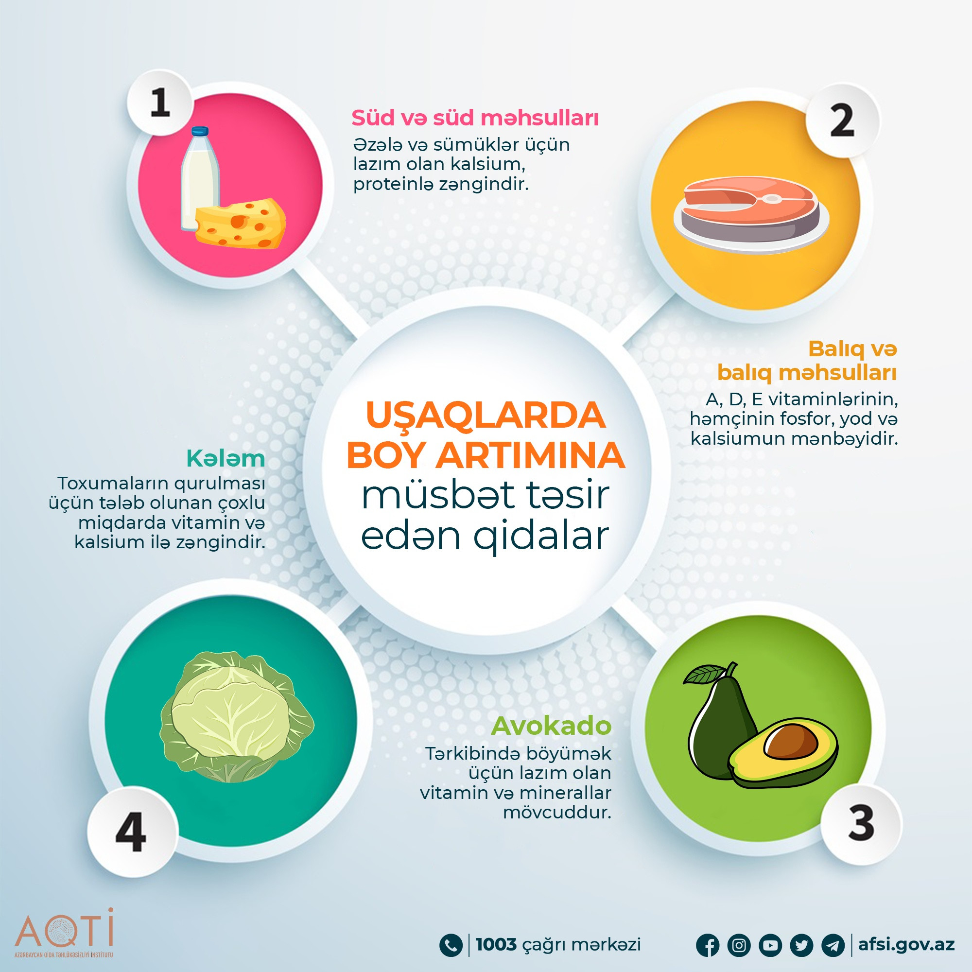 Uşaqlarda boy artımına müsbət təsir edən qidalar açıqlanıb.