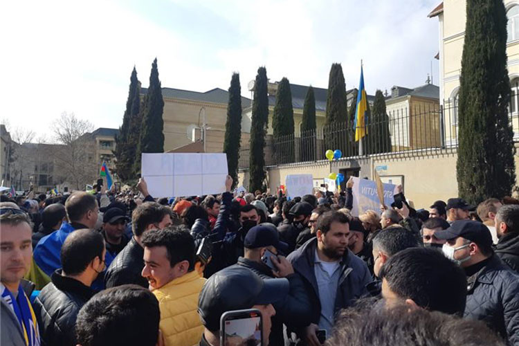 Ukraynanın Bakıdakı səfirliyi qarşısında Ukraynaya dəstək aksiyası keçirilib.