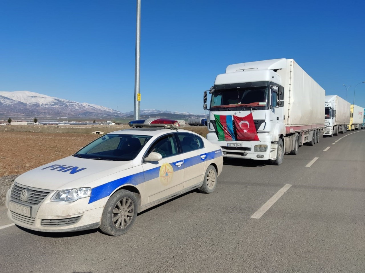 Azərbaycan Respublikasının Prezidenti cənab İlham Əliyevin tapşırığına uyğun olaraq, Türkiyə Respublikasında baş vermiş güclü zəlzələnin fəsadlarının aradan qaldırılmasına dəstək məqsədilə 11 fevral tarixində yola salınmış Fövqəladə Hallar Nazirliyinin növbəti humanitar yardımını aparan 9 yük avtomobilindən ibarət üçüncü karvan bu gün qardaş ölkəyə çatıb.
