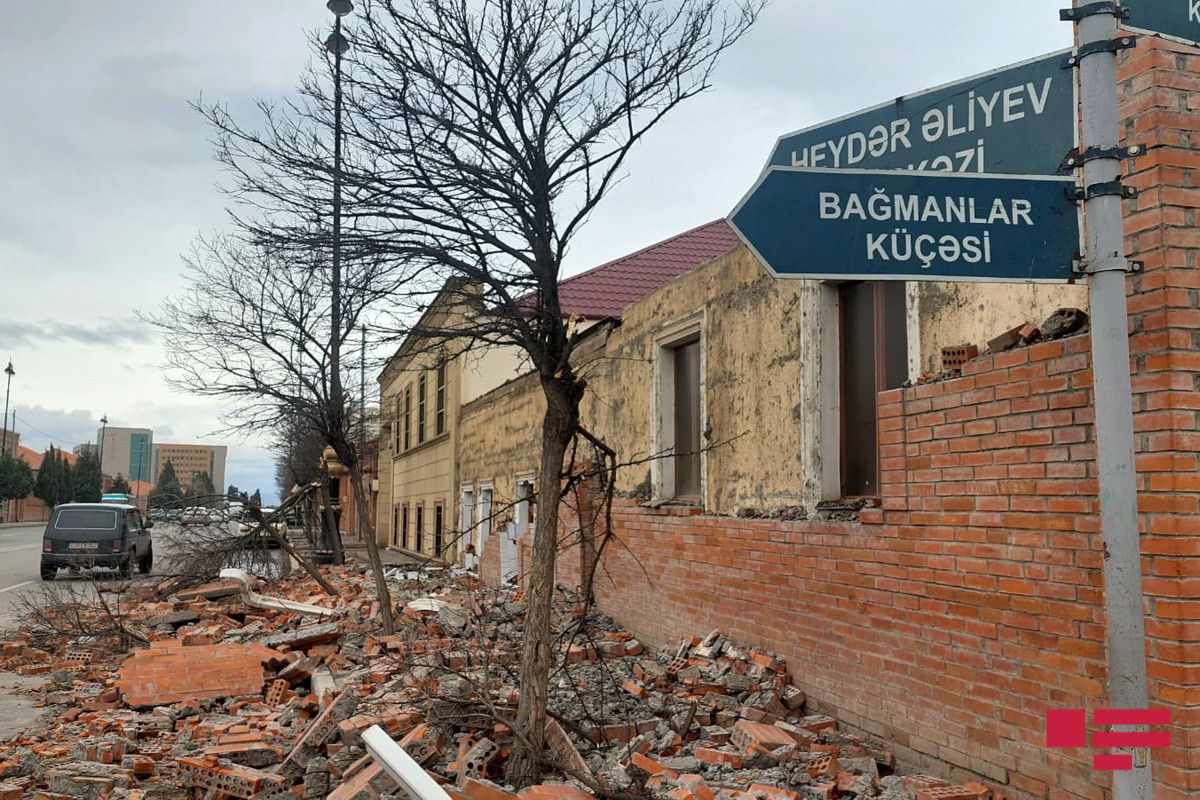 Gəncədə güclü külək evin divarını uçurdub.