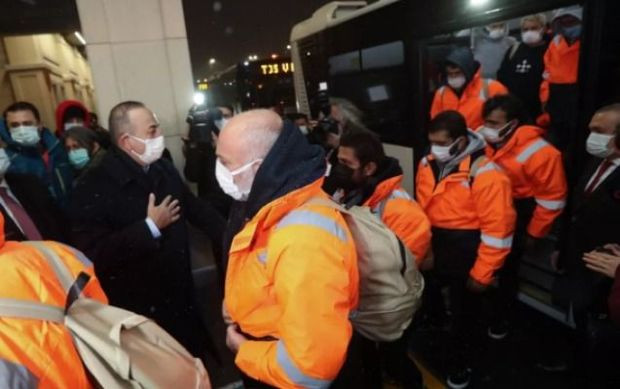 Nigeriya sahillərində heyət üzvləri dəniz quldurları tərəfindən qaçırılan 15 türkiyəli dənizçi İstanbulda Türkiyənin xarici işlər naziri Mövlud Çavuşoğlu tərəfindən qarşılanıb.