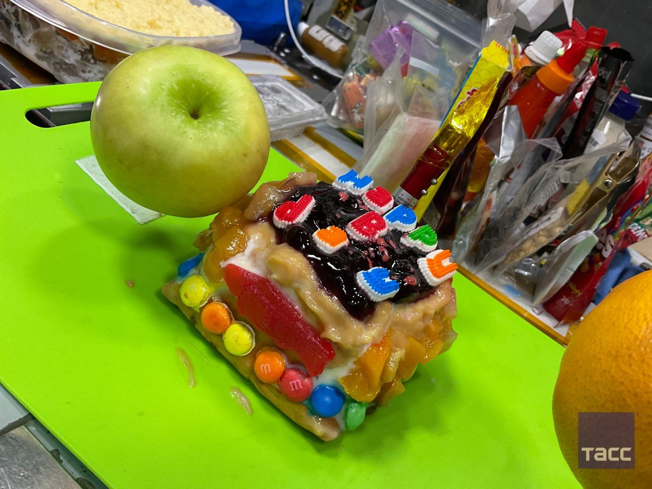 Lent.az-ın xəbərinə görə, onlar “Mimoza” salatı və tort hazırlayıblar. Bunun üçün əl altında olan “çoxmillətli” ərzaqdan istifadə edilib. Ad gününün videosu “Roskosmos”un saytında yerləşdirilib.
