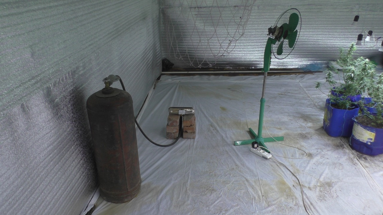 Nəticədə evin həyətyanı sahəsindən 35 ədəd xüsusi qulluq göstərilməklə yetişdirilən çətənə bitkiləri aşkar edilib. Polis əməkdaşları tərəfindən davam etdirilən tədbirlərlə E.Abulovun əmisinə məxsus, ancaq onun nəzarətində olan yardımçı tikilinin zirzəmisində xüsusi örtüklə izolə edilmiş narkotik tərkibli bitkilərin yetişdirilməsi və emalı üçün nəzərdə tutulmuş, istilikvermə cihazları, işıq sistemi və digər texniki ləvazimatlarla təchiz edilmiş xüsusi laboratoriyanın olduğu müəyyən edilib. Həmin laboratoriyadan, eləcə də yardımçı tikilidən və onun həyətyanı sahəsindən ümumilikdə 53 ədəd narkotik tərkibli bitkilər və kisələrdə 14 kiloqrama yaxın qurudulmuş marixuana qablaşdırılaraq götürülüb. E.Abulov şübhəli şəxs qismində tutularaq götürülmüş maddi sübutlarla birlikdə istintaqa təqdim olunub.Saxlanılan şəxs ifadəsində uzun müddət narkotik istifadəçisi olduğunu və çətənə kollarını mart ayında becərərək xüsusi qulluq göstərdiyini bildirib.