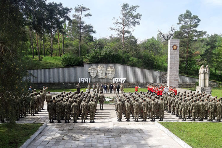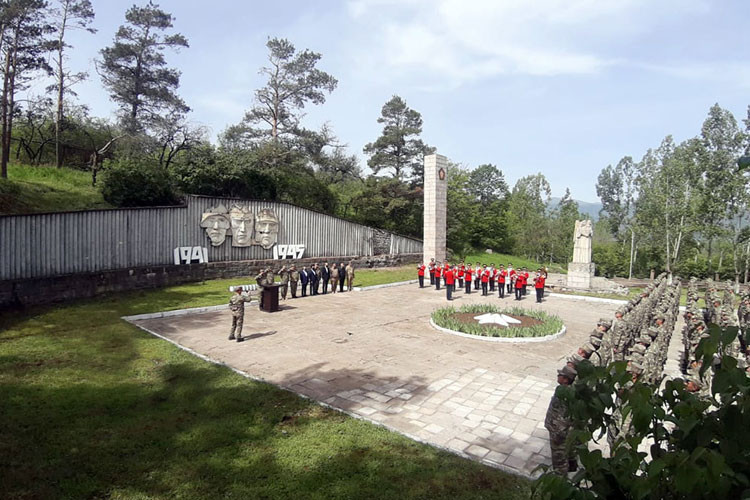 Müdafiə Nazirliyindən Lent.az-a verilən məlumata görə, İkinci Dünya müharibəsində misilsiz qəhrəmanlıqlar göstərmiş xalqımızın igid oğullarının əziz xatirəsi bir dəqiqəlik sükutla yad edilib, Azərbaycan Respublikasının Dövlət Himni ifa olunub.