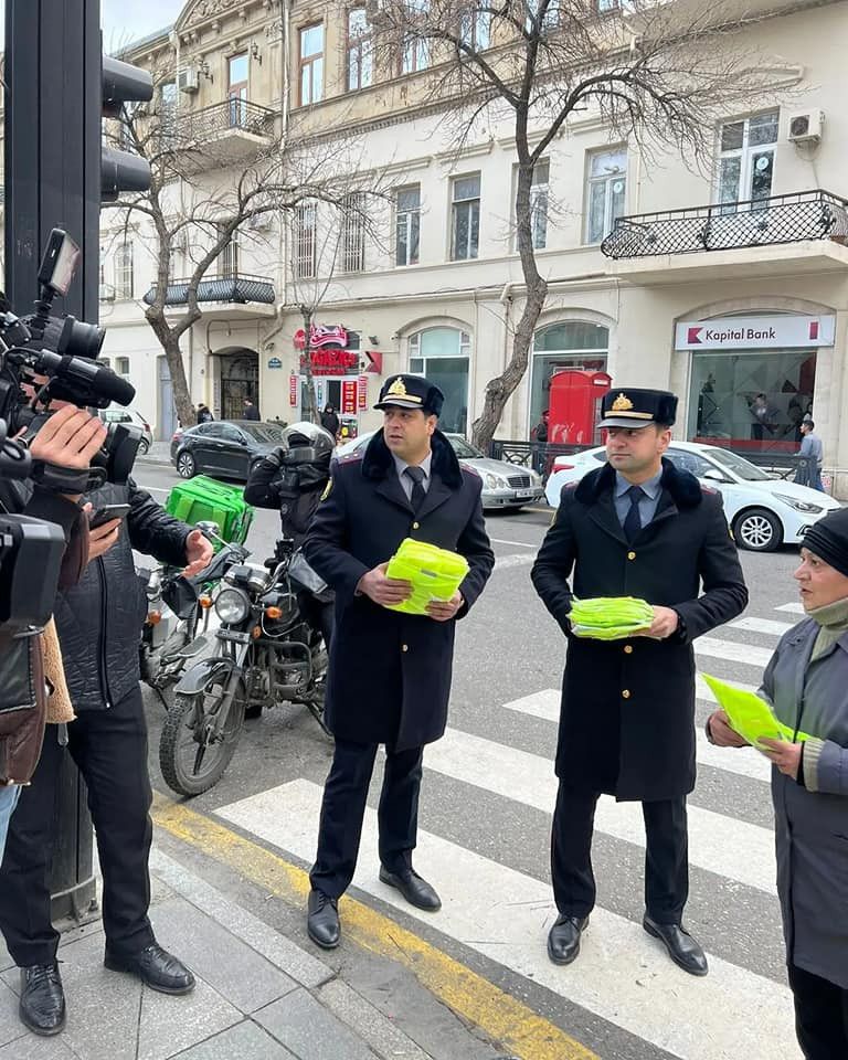 Baş Dövlət Yol Polisi İdarəsi tərəfindən paytaxt ərazisində moped və velosiped sürücülərinə xüsusi işıqqaytarıcı jiletlər paylanılıb.